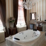 If you’re lucky enough to reside in a spacious apartment with tall walls and big rooms, placing a large chandelier above will add a little sparkle. Don’t be afraid to do so even if your house is smaller, the effect will be the same.