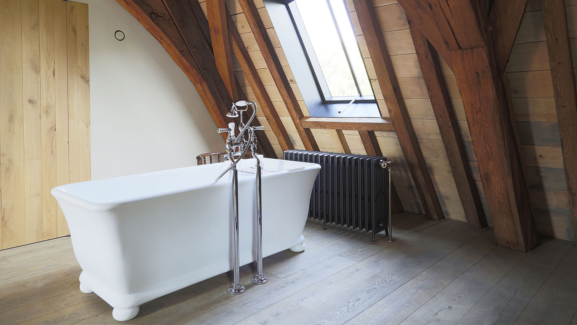The focus of this project was a former refuge house located in Belgium, more precisely in Diest. It used to serve as a shelter for the monks of the Averbode Abbey.This listed property built in brick and sandstone has seen many changes throughout history as it dates back to the 16th century. In the process of altering and renovating, our client added an extension to the building where he purchased and installed black and white bakelite switches and a plain Premier Dining Room radiator dating back to the 1920’s.