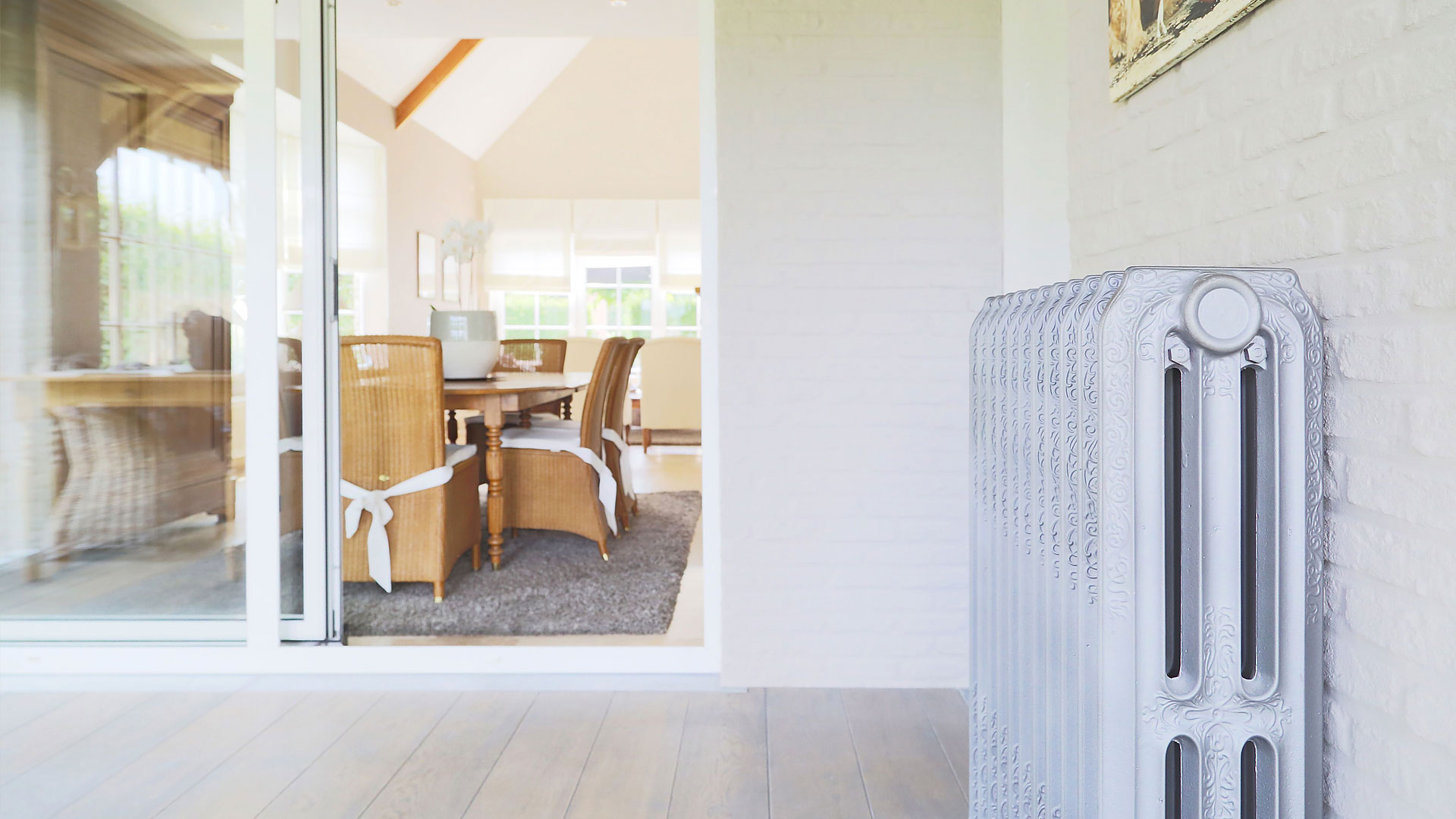 This private home near Diest features reclaimed St. Louis radiators in its stylish interior design. We provided the necessary guidance for the owner to make the right choice in the matter of size and heat output. These cast iron radiators proved to be a perfect fit for this beautiful, airy room, filled with natural light.