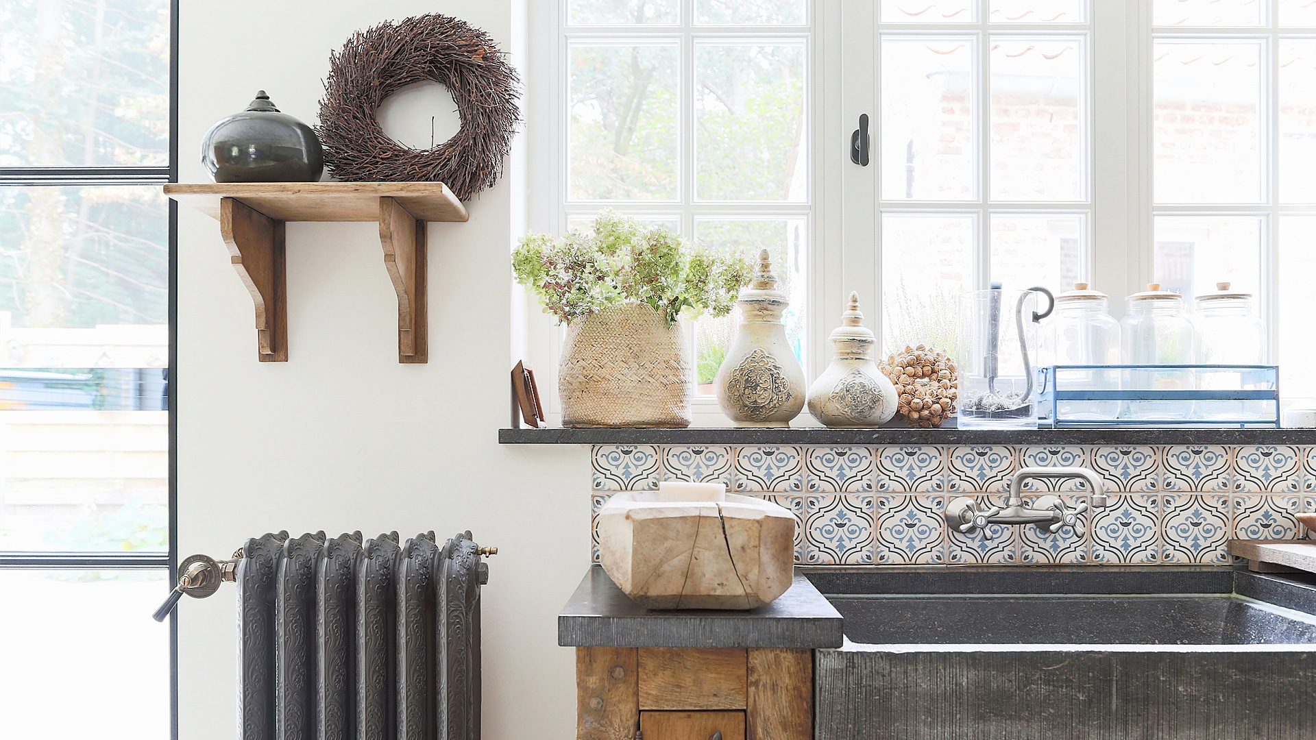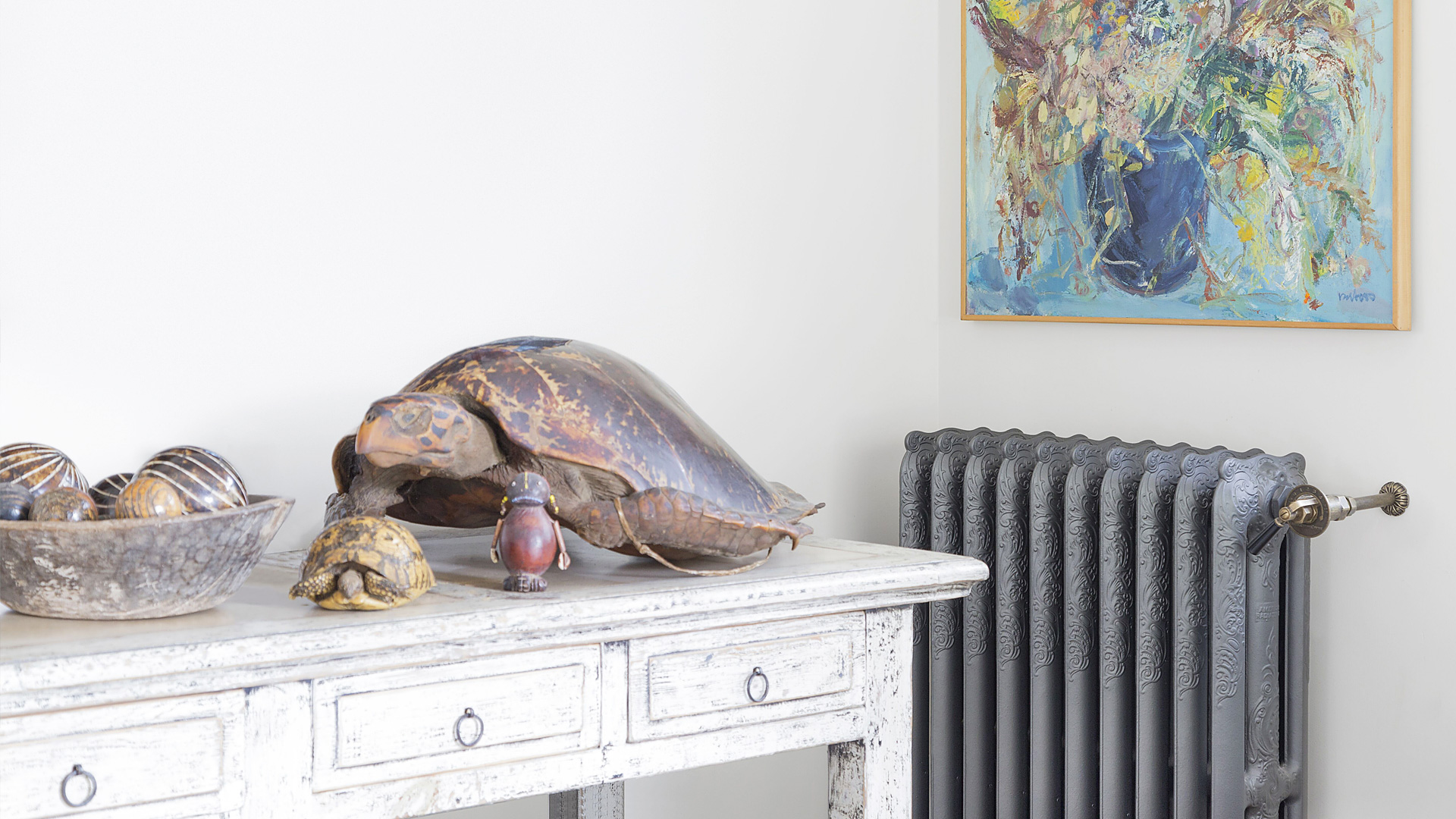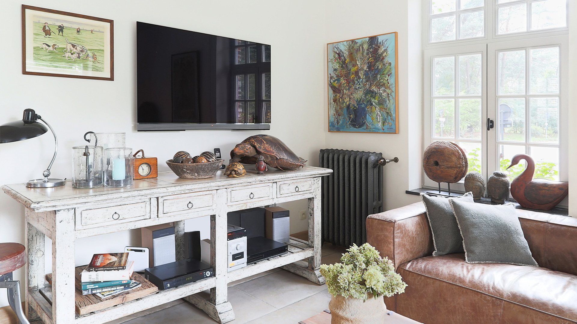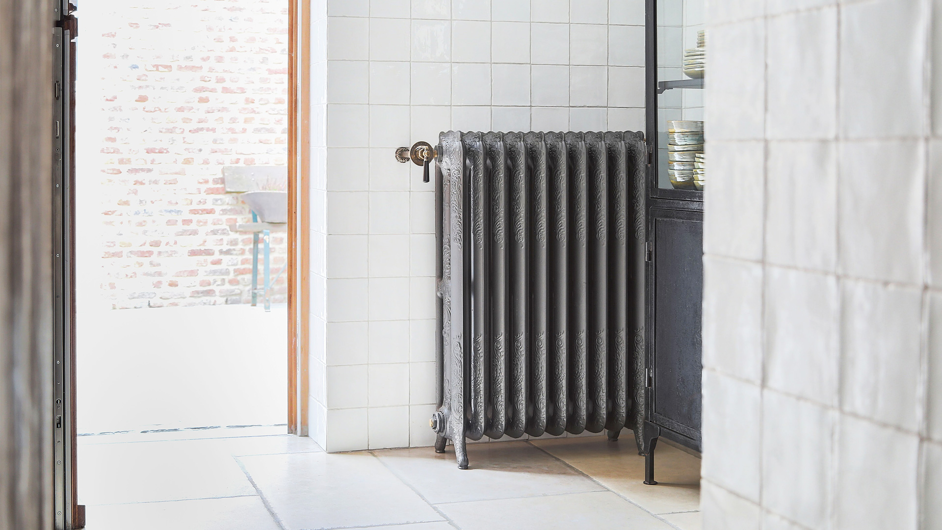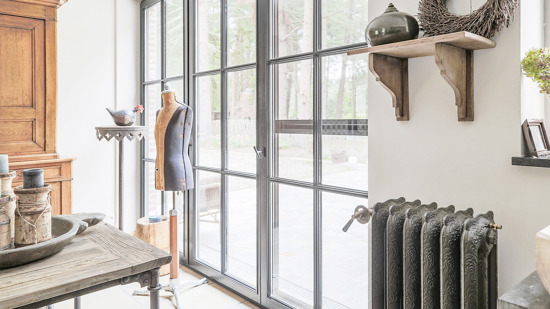 This beautiful newly built house in Mol, Belgium, catches the eye of art lovers as much as it has the potential to captivate any viewer that is keen on aesthetics. Home to many works of art, it playfully displays it in many shapes and forms, highlighting the function of both beauty and efficiency. The owner chose to compliment the interior design with beautiful reclaimed American Rococo radiators, except for the bathroom which displays a newly manufactured model.