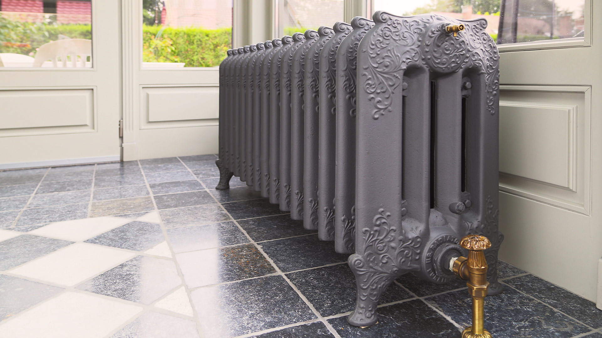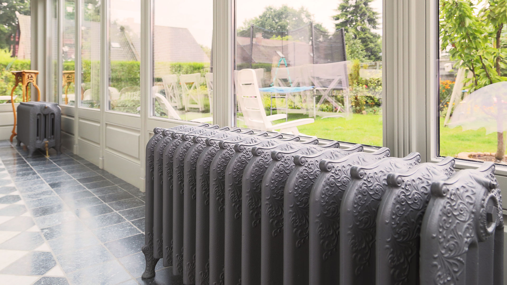 With enchanting natural light and pleasant surroundings, this veranda in Kwaadmechelen offers a great view regardless of the season, thanks to these two original Triton 4 column radiators.